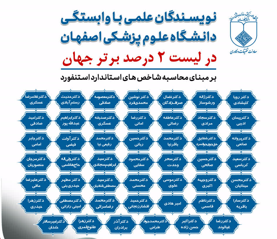 بر اساس تازهترین رتبهبندی جهانی دانشمندان که توسط دانشگاه استنفورد منتشر شده است، ۴۸ نفر از اعضای هیئت علمی و نویسندگان علمی دانشگاه علوم پزشکی اصفهان در میان ۲ درصد دانشمندان برتر جهان در سال ۲۰۲۵ قرار گرفتهاند.